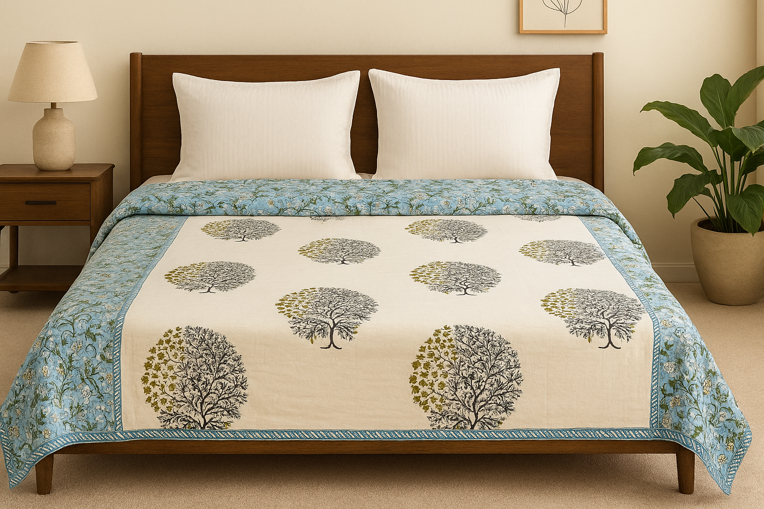 Handblock Printed Premium Cotton Bedcover | Jaipuri Prints | Pine bedcover