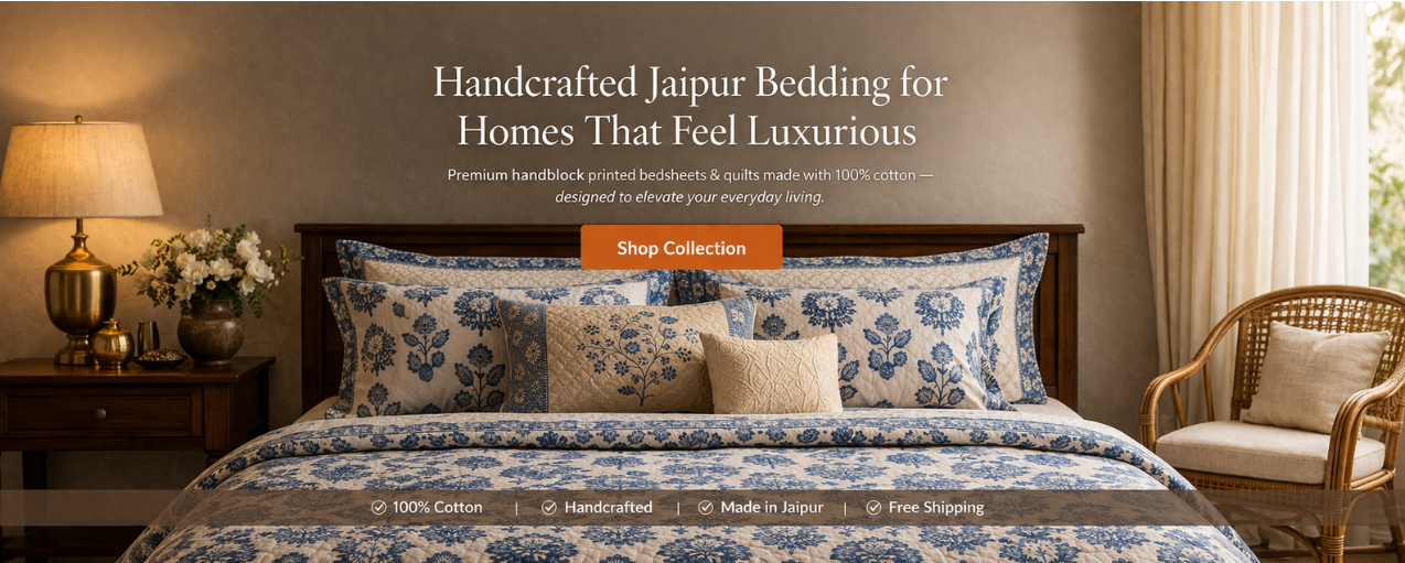 Premium Handblock Jaipuri Double Bedsheet | 100% Cotton | Multi Jaal Bedsheet