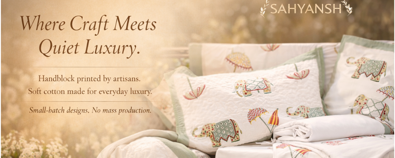 Handblock Soft Mulmul Double Jaipuri Razai | Palm Whisper Quilt